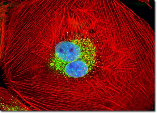 F-Actin Visualization: The actin cytoskeleton was stained with Alexa Fluor 488–conjugated phalloidin (green emission).